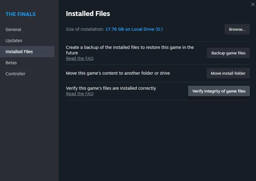 - Щелкните правой кнопкой мыши на The Finals в библиотеке Steam.