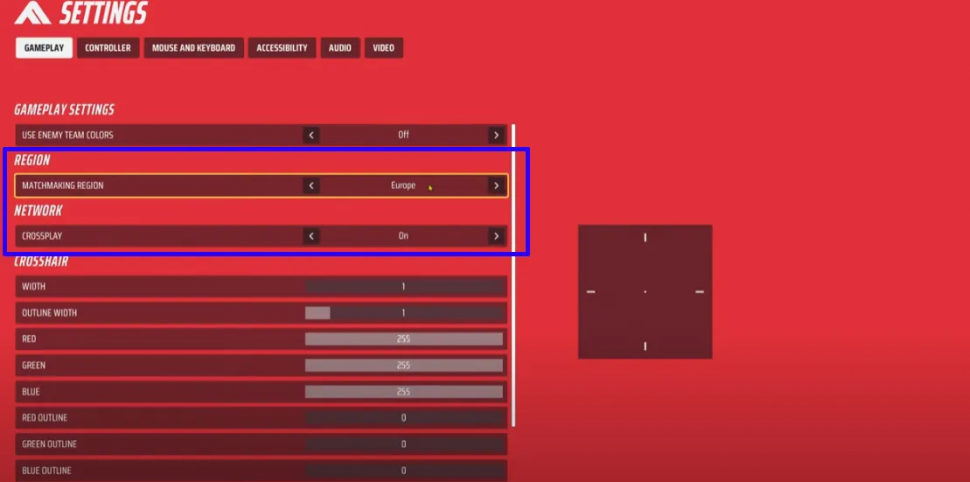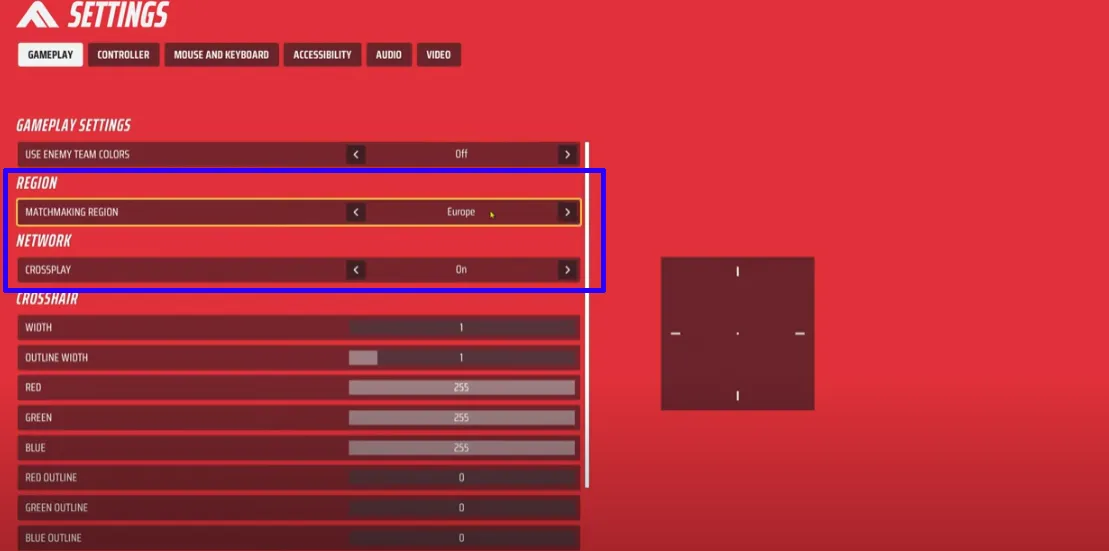 2. Выберите регион подбора и включите кроссплей.