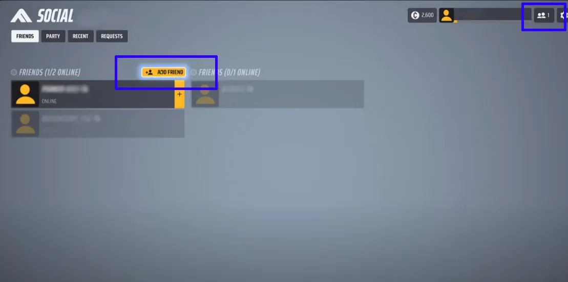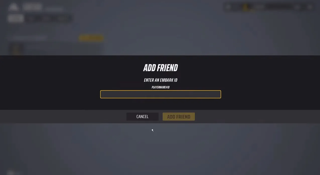 3. Вернитесь в главное меню The Finals и перейдите на вкладку "Друзья" в правом углу. Должна появиться кнопка "Добавить друга".