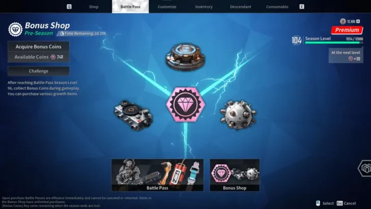 Бонусный магазин предлагает игрокам The First Descendent редкие материалы для оружия и реакторов. Чтобы приобрести эти предметы, вы используете бонусные монеты. Бонусные монеты зарабатываются при повышении уровня после достижения определенного уровня сезона Battle Pass с помощью премиум-обновления.
