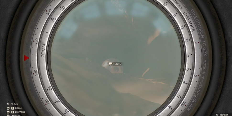 Перелистывая блокнот, игроки находят страницу, на которой написано, что "главная задача - добраться до лагеря". Под надписью находится карта с тремя обведенными ориентирами: "собака", "игла" и "крокко". Скальные образования в каньоне очень похожи на эти существа и предметы. С помощью телескопа найдите их вдалеке, чтобы получить дальнейшие указания и диалог. Просмотр хотя бы двух из трех ориентиров поможет игрокам определить точное местоположение Ясны на планете.