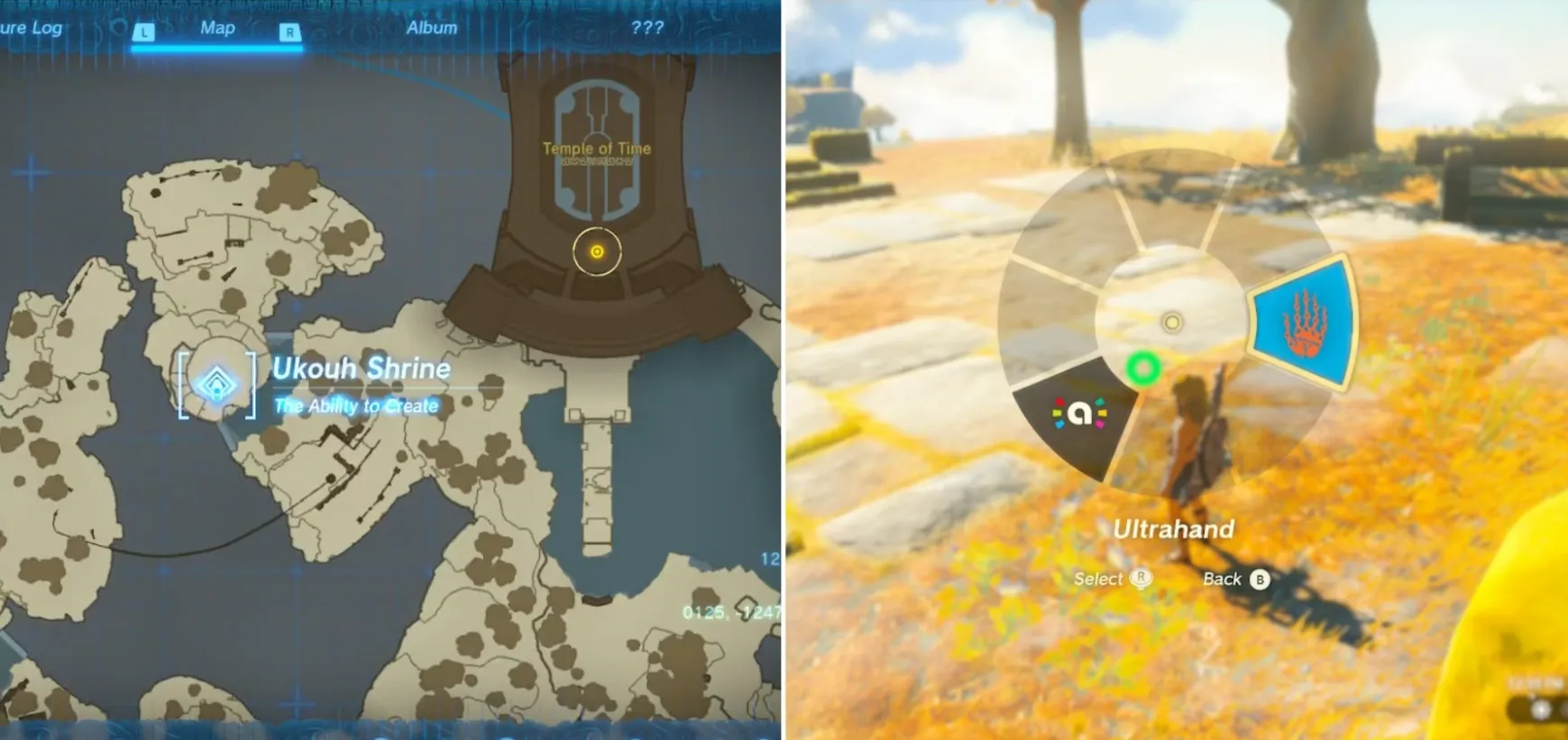 Линк откроет способность "Ultrahand" в режиме "tutorial". Это произойдет, когда он очнется на острове Великое небо и попытается попасть в Храм времени. После того как он разблокирует главный квест "Закрытая дверь", Рауру направит его к ближайшему святилищу на одном из плавучих островов. Это святилище Укоух, и именно в нем Линк получает способность Ultrahand. Затем игрокам нужно будет использовать Ultrahand для строительства мостов и крюков, чтобы получить Свет благословения святилища.