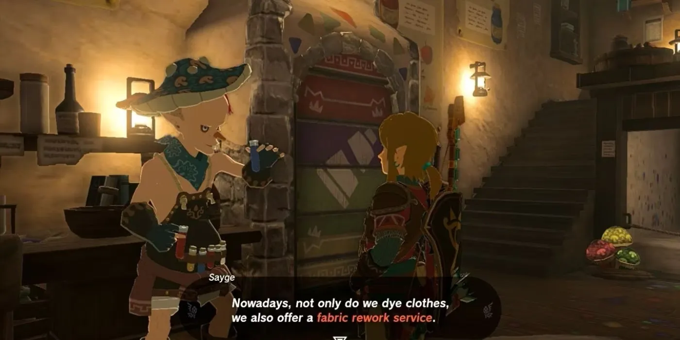 Как и в Breath of the Wild, игроки могут найти магазин Kochi Dye в деревне Хатено, где можно покрасить одежду, изменить цвет брони и ткани параплана. Благодаря четырем бутылкам с красителем, расставленным снаружи, игроки смогут легко найти это здание.
