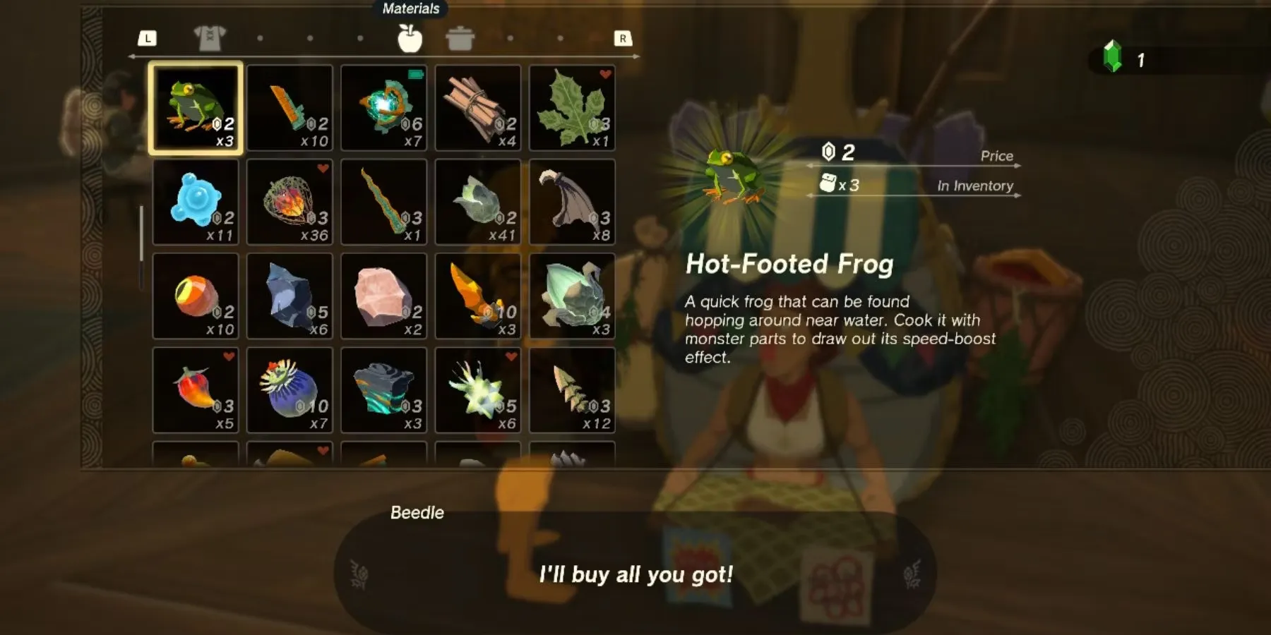 Игроки могут начать с продажи любых овощей, фруктов и мяса, которые они собирают во время бега. Эти предметы не слишком ценны, но из-за их изобилия игроки могут продавать большие объемы без опасений. Части монстров, убитых врагами, также можно продать, но мясо волков, лосей и медведей стоит дороже.