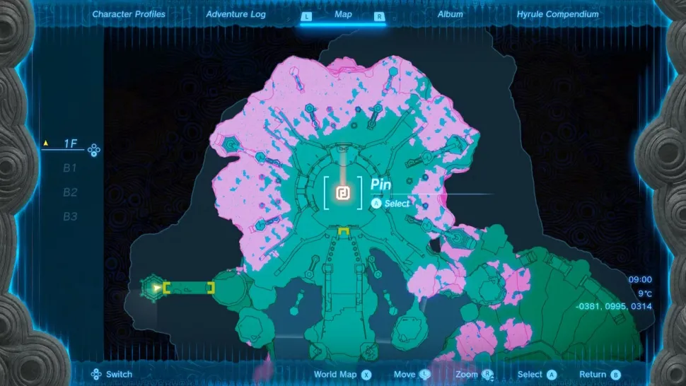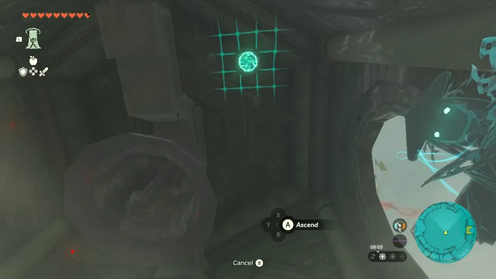 Оказавшись в тронном зале, игрокам нужно будет продолжить восхождение, поднимаясь по лестнице и проходя через мрак (при спринте Линк получит только 1/4 урона от сердца, преодолевая лестницу), используя силу Ascend, чтобы подняться вверх и оказаться на вершине тронного зала.