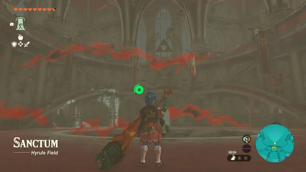 Игрокам, ищущим Сумеречный лук, придется проникнуть в замок Хайрул, но это не так сложно, как кажется на первый взгляд. Игроки могут использовать башню Skyview Tower в Lookout Landing, чтобы подняться в воздух и спуститься к замку без особых проблем. Игроки должны приземлиться с левой стороны замка, если смотреть на него со стороны башни Skyview Tower, и продолжить движение вверх, чтобы найти Санктум (проще всего добраться до него с круглой конструкции напротив кабинета принцессы Зельды, на которую можно взобраться, чтобы легко добраться до входа в Санктум).