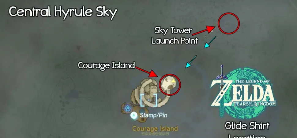 Остров Мужества находится по координатам -2226, 0927, 1644 в регионе Hyrule Ridge Sky. Прямой полет к острову может оказаться сложным для игроков с низким уровнем выносливости, поэтому по пути останавливайтесь на небольших островах, чтобы пополнить запасы, или используйте расходные материалы, восстанавливающие выносливость.