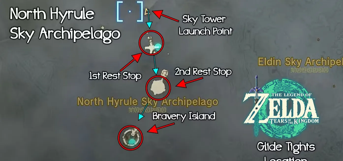 Чтобы приобрести Glide Tights, игрок должен добраться до башни Thyplo Ruins Skyview Tower в координатах 0338, 3123, 0174, к северу от Великого леса Хайрул. От башни летите на юг к острову Храбрости в регионе Архипелаг Северное Небо Хайрула.