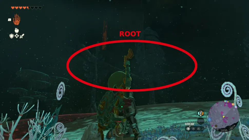 - Идите на юго-восток к большому корню по координатам -4187, 2617, -0557, снова пройдя мимо сине-белого фрокса.