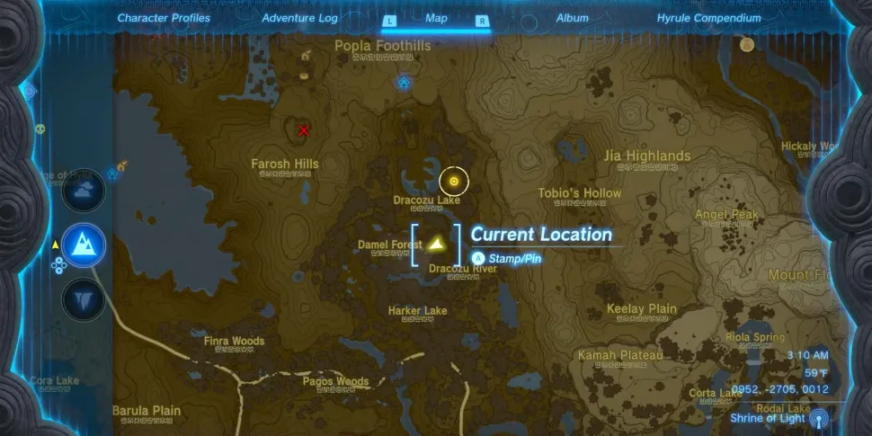 После того как игроки исследуют Пятое кольцо в деревне Какарико и покажут Тауро фотографию плиты Зонаита, исследовательская группа отправится к башне Popla Foothills Skyview Tower. Там игроки могут поговорить с NPC возле небольшой палатки, который сообщит им, что Тауро отправился к озеру Дракозу, которое находится к юго-востоку от башни Skyview Tower. Именно в этой зоне игроки найдут полный комплект заряженных доспехов, но для этого им необходимо пройти основной квест.