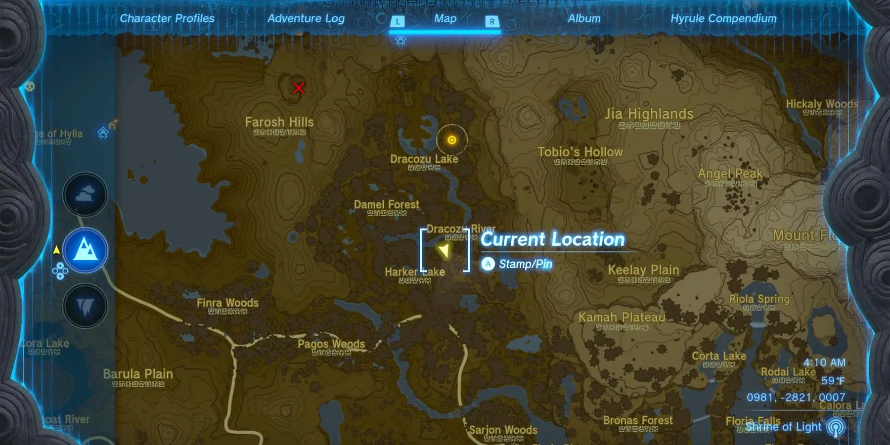 После того как игроки исследуют Пятое кольцо в деревне Какарико и покажут Тауро фотографию плиты Зонаита, исследовательская группа отправится к башне Popla Foothills Skyview Tower. Там игроки могут поговорить с NPC возле небольшой палатки, который сообщит им, что Тауро отправился к озеру Дракозу, которое находится к юго-востоку от башни Skyview Tower. Именно в этой зоне игроки найдут полный комплект заряженных доспехов, но для этого им необходимо пройти основной квест.