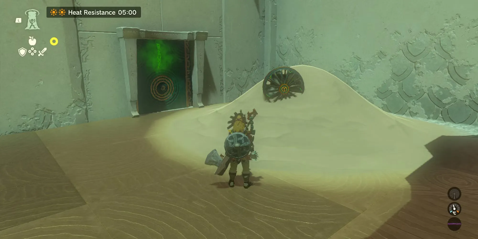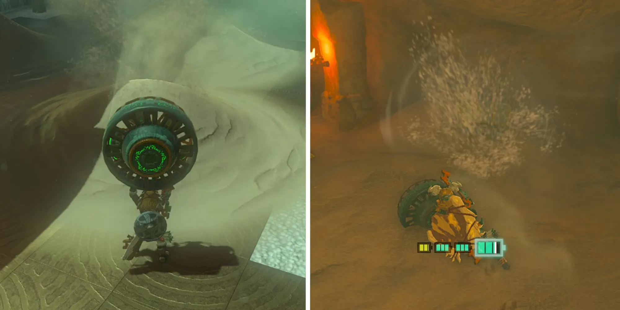 Еще больше куч песка можно найти в секретном проходе между приютом города Герудо и северными руинами, известном как Долина молчаливых статуй. Те же методы можно использовать в Храме Молний, но там у Линка больше материалов, включая ветви Корока. Если к этому моменту игроки уже выполнили главный квест "Тулин из деревни Рито", они также могут использовать способность мудреца Тулина, чтобы порывом выбросить песок.