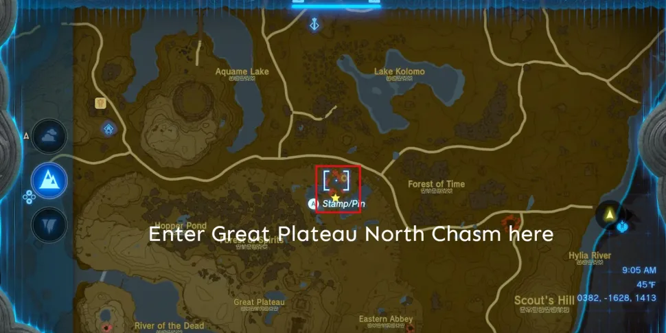 Еще один хороший способ добыть Зонаит - спуститься в область под Хайрулом, известную как Глубины. Чтобы добраться до этой области, Линк может просто скользить вниз в попадающиеся ему на пути пропасти, которые отмечены на карте красными кругами.