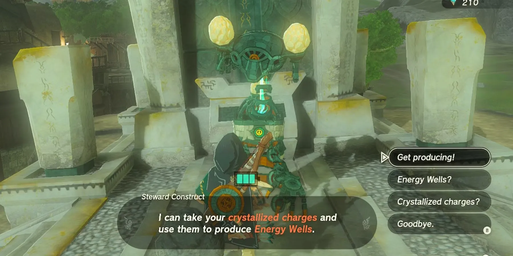 - Перерабатывайте Кристаллизованные заряды: Кристаллизованные заряды - это особый ресурс, который понадобится Линку для модернизации Энергетической ячейки. Он встретит специальных конструктов, которые переработают три зонита в один кристаллизованный заряд. По мере прохождения игры будет появляться все больше возможностей получить кристаллизованные заряды, но в ранних частях лучшим вариантом будет кузнечный конструктор.