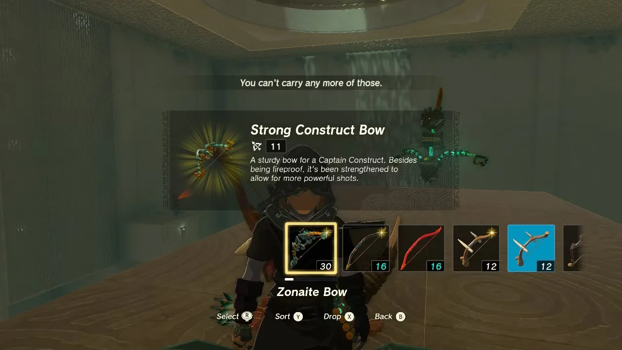 Игроки могут сразиться с конструктом ради заряда Зонаи и некоторых материалов для изготовления поделок или пролететь к выходу, не вступая в бой с этим врагом.