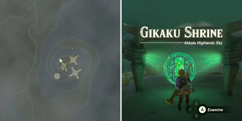 Храм Гикаку находится в регионе Аккала Хайлендс Скай к северо-востоку от храма Натак. Если предполагается, что игроки уже посетили святилище Натак, им следует начать оттуда. Если нет, то они могут либо отправиться на север от святилища Игошон и перепрыгивать с острова на остров, либо отправиться к святилищу Геминак, расположенному внизу на поверхности, и с помощью устройства Зонаи подняться прямо наверх. Координаты святилища Гикаку - 4505, 2165, 1155.