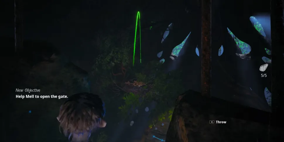 Затем Голлуму нужно будет поместить два драгоценных камня во Врата Мрака, один из которых можно найти на земле рядом с Мелл. Чтобы найти второй камень, Голлум должен бросить камень в птичье гнездо на дереве слева от Врат Дымки. Если к этому моменту у игроков закончились камни, они могут найти новые рядом с водой.