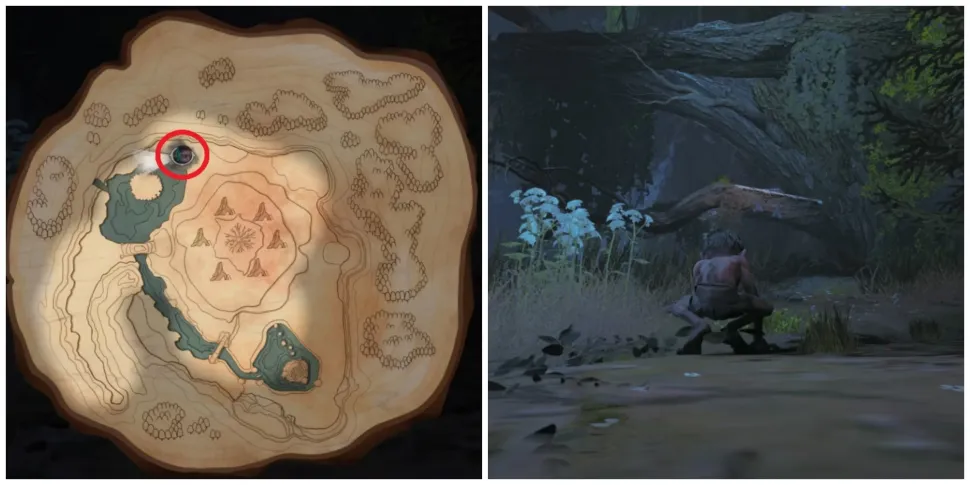Пройдя на север от западного озера, Голлум найдет ветку дерева, на которую можно запрыгнуть и взобраться. Затем ему нужно будет перепрыгнуть на ветку прямо за ним, повернуть направо и перепрыгнуть на лианы на стене, на вершине которой он найдет Лук Селона.