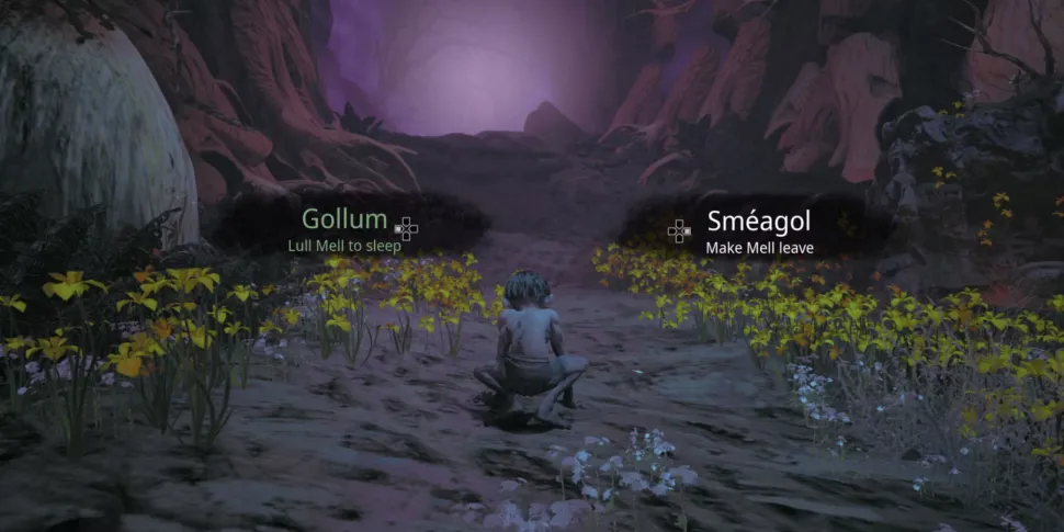 Прежде чем Голлум начнет искать ответ, игроки должны выбрать между подсказками "Осторожно закрыть глаза" и "Доверять Мелл". Оба ответа приводят к одному и тому же результату, поэтому игроки могут выбрать тот, который им больше нравится.