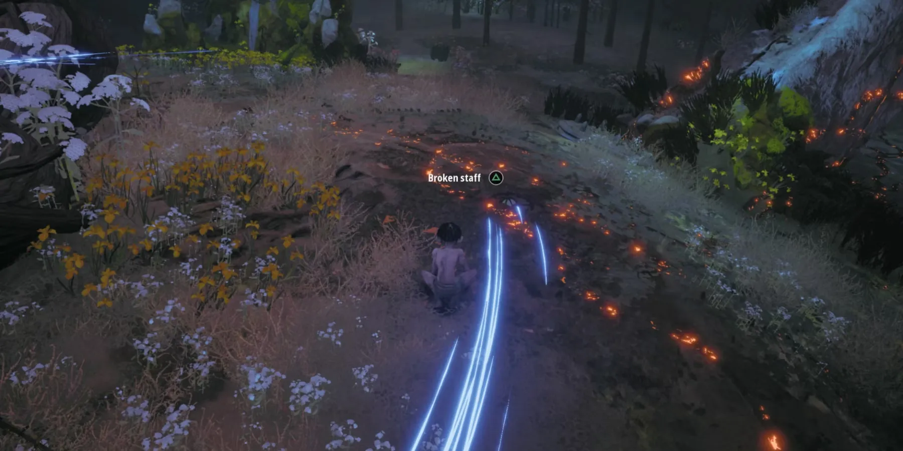 Следуя за первыми синими вихрями на восток и вокруг дерева, Голлум найдет посох Эристора; следуя по следу в другом направлении, он достигнет северо-западного ритуального камня, с которым игроки должны взаимодействовать и выбрать вариант "Эльф с посохом".