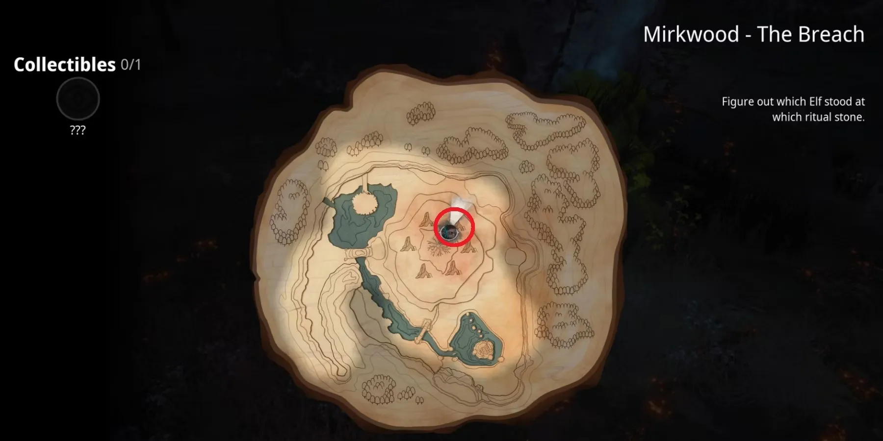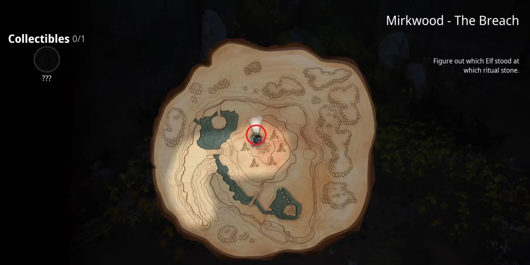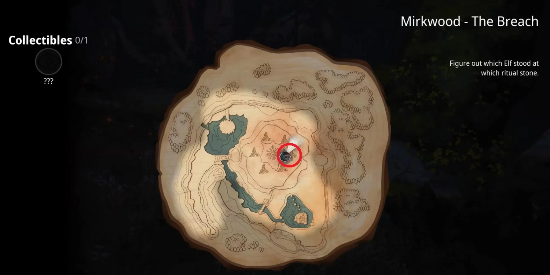 Продолжение движения по тропе приведет к юго-западному ритуальному камню, при взаимодействии с которым игроки должны выбрать вариант "Эльф с ножом".
