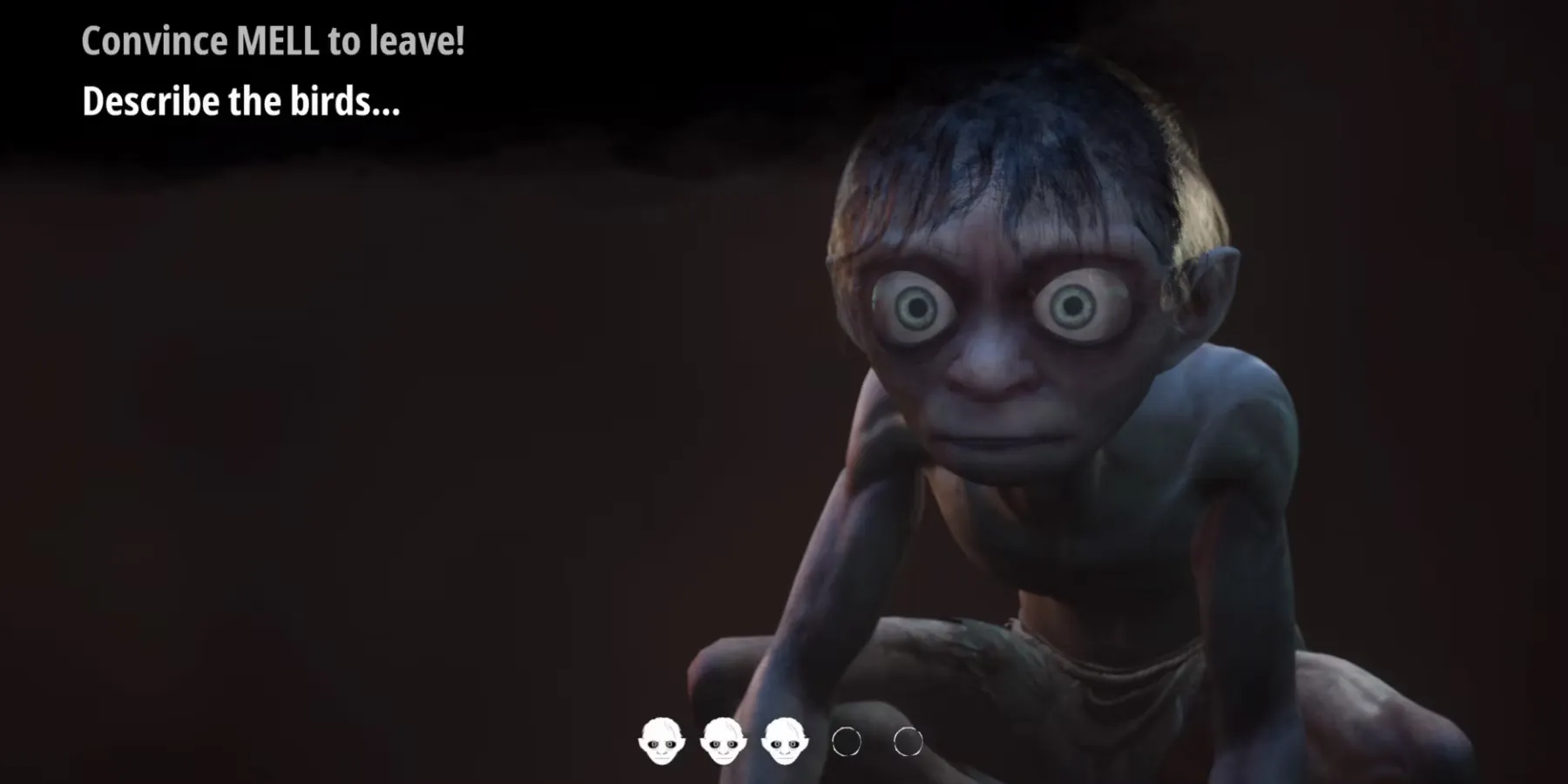 Когда Голлум выиграет спор, начнется сцена, в которой он попытается задушить Мелл. Затем он отвлечется на близлежащие цветы, давая Мелл шанс убежать.