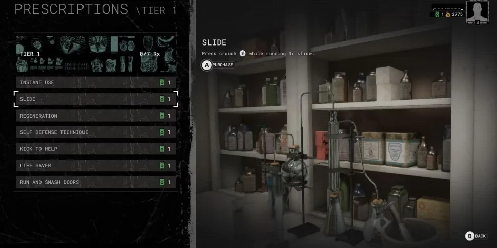 Скольжение можно найти в рецептах первого уровня, поэтому игроки могут купить его, как только смогут поговорить с Эмили. Как только они купят "Скольжение", они автоматически получат возможность использовать его с помощью ручного ввода. Чтобы активировать его, нажмите кнопку приседания во время бега, чтобы скользить по земле. Другие полезные рецепты, увеличивающие силу, скорость и выносливость, игроки могут приобрести, как только получат больше билетов.