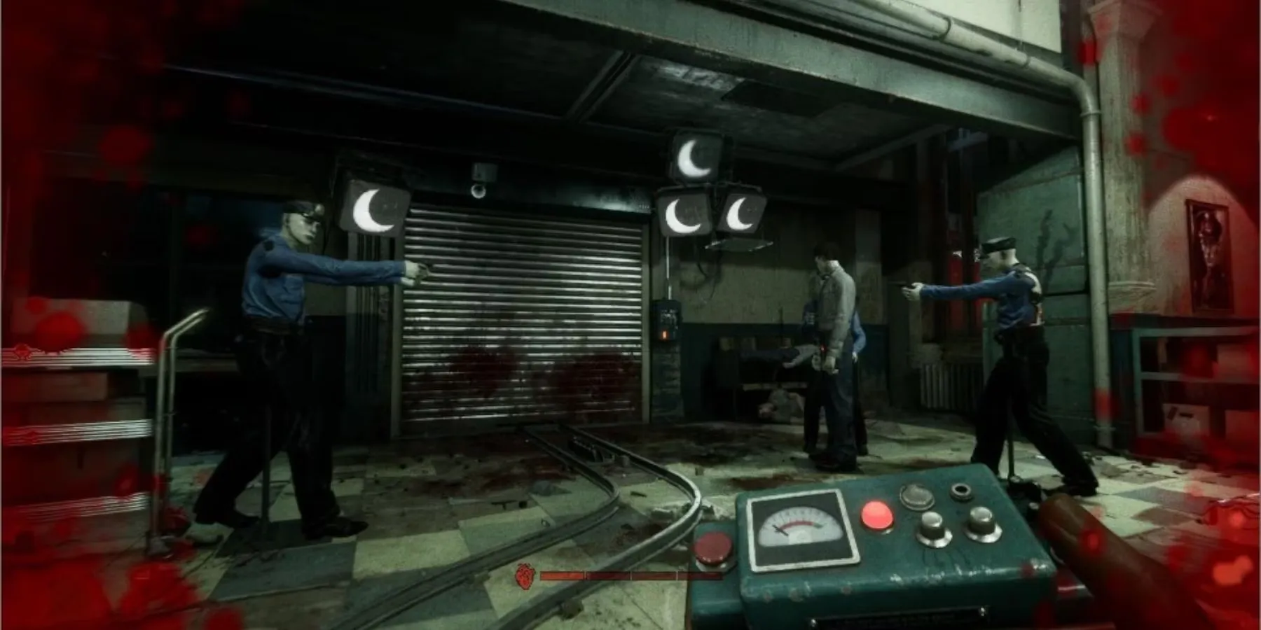 Войдите в желтую дверь с надписью "Ключ", и на полу будет лежать труп с синим сердцем на груди. Игроки должны обыскать труп и вытащить ключ из его сердца. Чтобы открыть первые ворота, используйте ключ в синей электрической панели рядом с воротами.