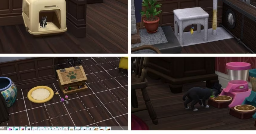 Прежде чем ваш сим заведет кошку или собаку, вы должны подготовить дом к появлению питомца, купив все необходимое, поэтому зайдите в режим строительства и найдите раздел "Уход за питомцем". Здесь представлено все, что вам понадобится для вашего нового питомца: