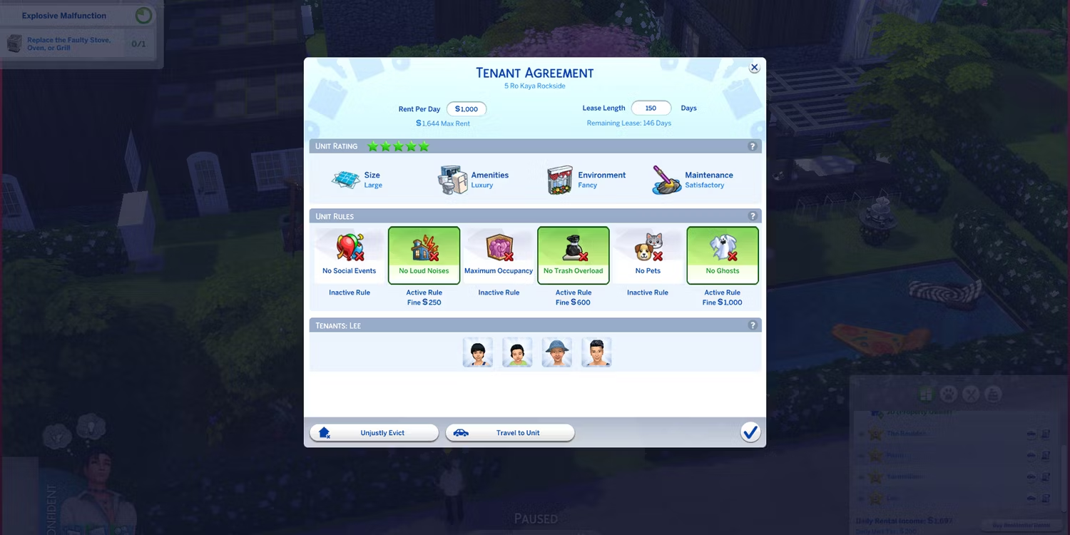 Один из пакетов The Sims 4 предлагает геймплей, позволяющий симам стать как арендаторами, так и арендодателями. В роли арендаторов игроки могут ориентироваться в динамичной среде совместного проживания, где им нужно придерживаться правил, чтобы избежать справедливого или несправедливого выселения.