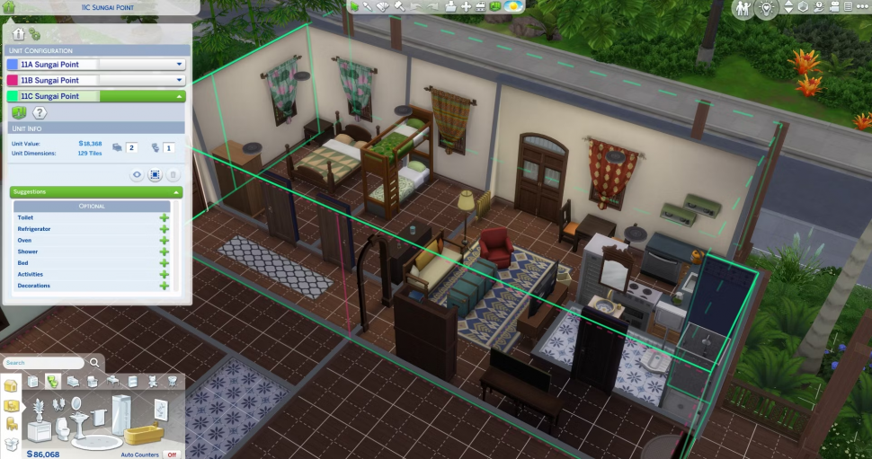 В этом меню вы также можете изменить характеристики участка или назначить задачи участка. Кроме того, вы увидите список предлагаемой мебели, которая поможет повысить рейтинг объекта.