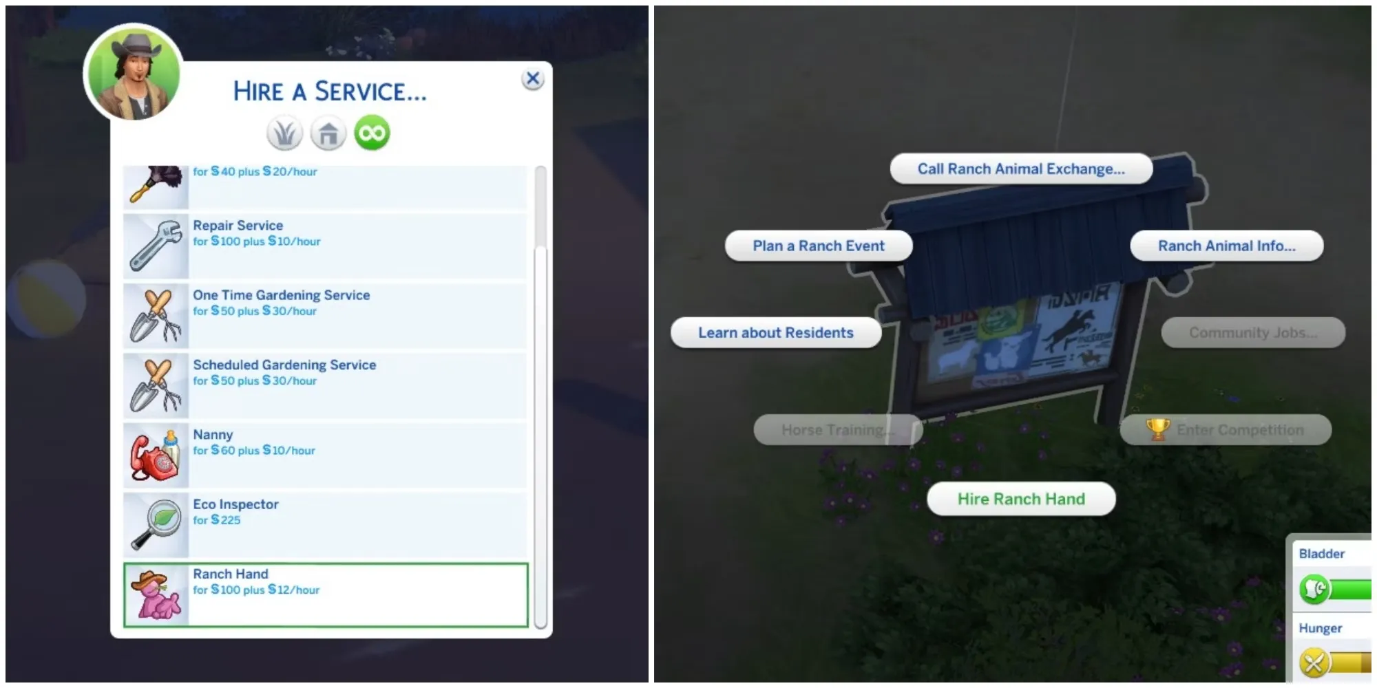 В The Sims 4 игроки могут нанять работника на ранчо в Chestnut Ridge, взаимодействуя с доской объявлений на ранчо, или выбрать его из опции "Нанять работника" в приложении "Дом" на телефоне своего сима.