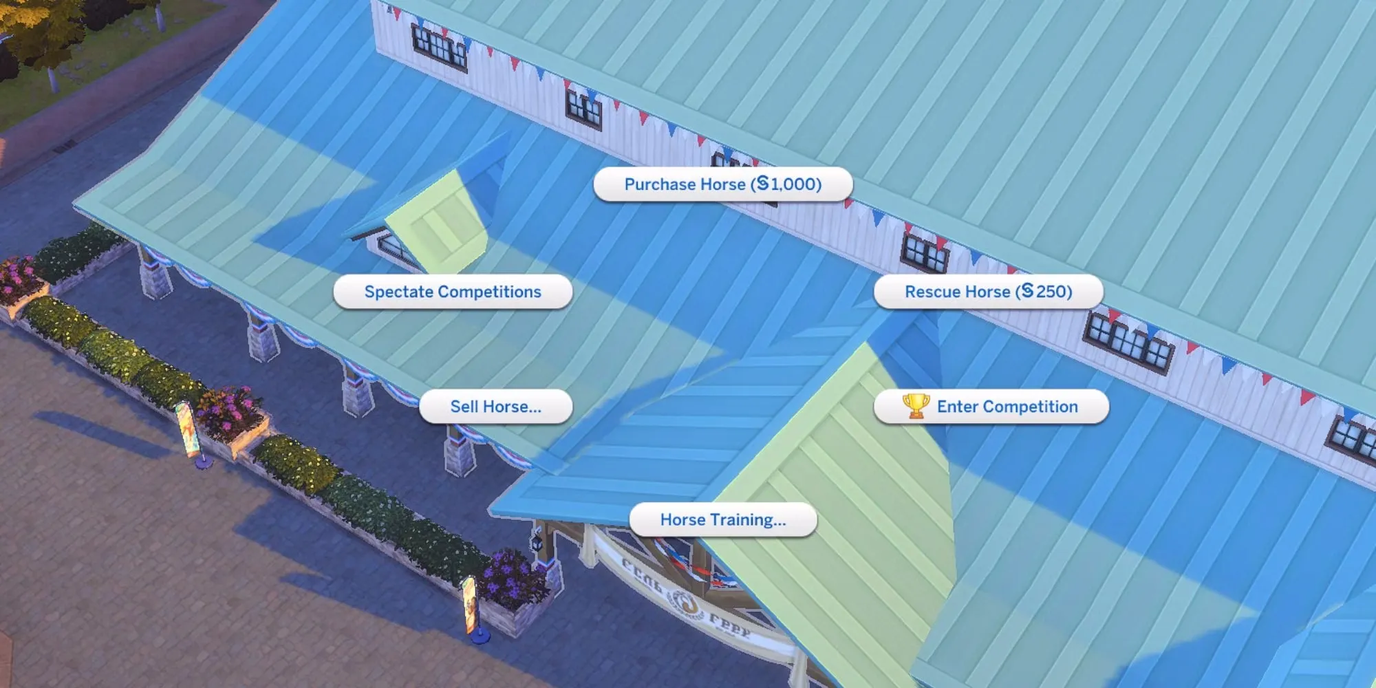 Стандартные соревнования доступны каждый день с 7 утра до 7 вечера, а Чемпионат лошадей - только по субботам в эти же часы. Чтобы принять участие в соревнованиях, игроки могут либо кликнуть на Центр конного спорта в районе New Appaloosa в Chestnut Ridge, либо воспользоваться доской сообществ. Симы, которые не живут в этом районе или не хотят каждый раз перед соревнованиями ездить в соседний район, могут просто приобрести общественную доску в меню "Купить", чтобы сделать это более удобным для себя. После этого симы и лошади отправятся в кроличью нору, а игрокам нужно будет просто подождать пару часов, пока симы не вернутся с результатами.