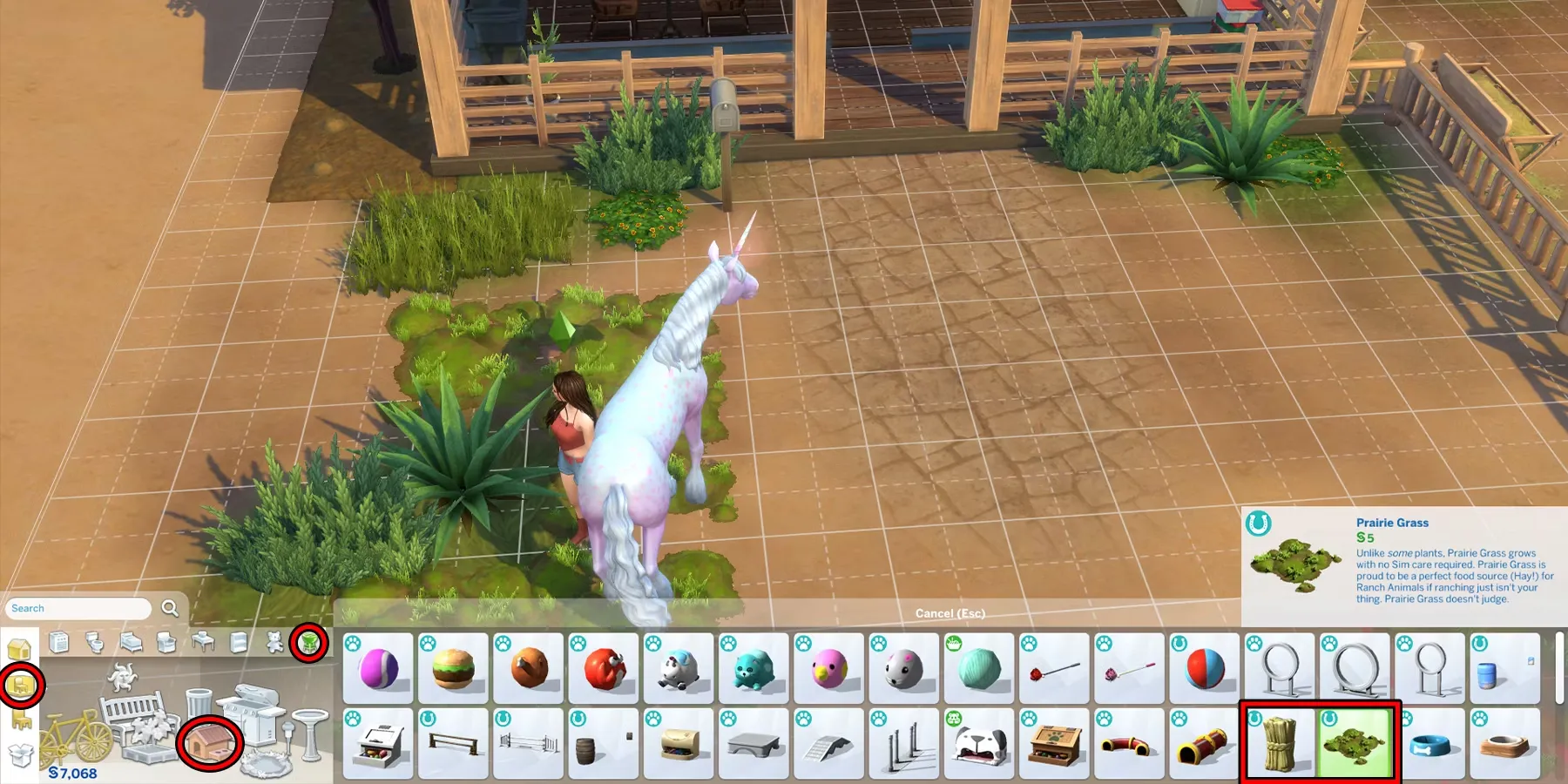 Получить траву прерии в режиме покупки довольно просто: откройте меню и перейдите в раздел Objects by Room, Outdoors, а затем щелкните на маленьком домике, который называется Animals. Найдите участок с травой прерии, который стоит 5 симолеонов. Рядом с ним находится стог сена для травы прерии, который стоит 4 симолеона.