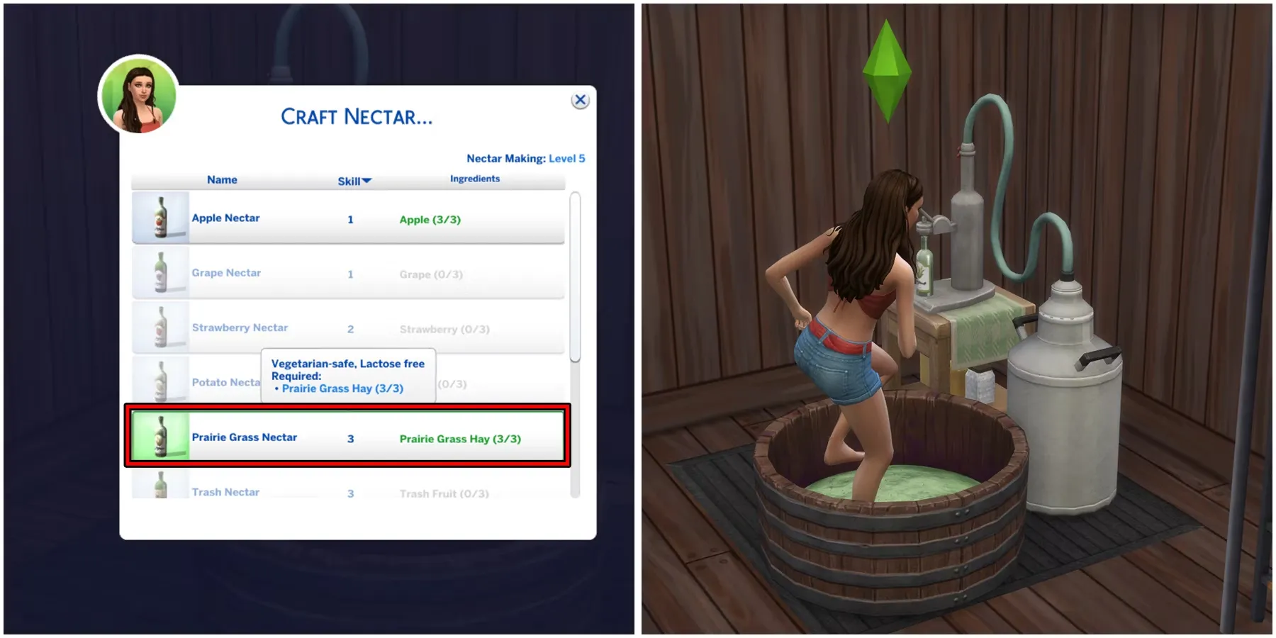 Еще одно прекрасное применение травы прерий - приготовление нектара. Приобретите прибор для приготовления нектара Rootin' Fruit'n в режиме покупки. Затем достигните третьего уровня приготовления нектара, чтобы открыть рецепт нектара из травы прерии в The Sims 4.