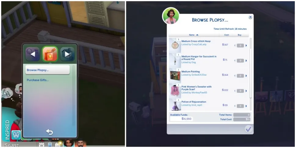 Игроки, владеющие пакетом вещей Nifty Knitting The Sims 4, могут получить доступ к приложению Plopsy с помощью своего внутриигрового телефона. Чтобы открыть его, необходимо выбрать вкладку "Покупки" на телефоне своего сима, а затем выбрать опцию "Обзор Plopsy".