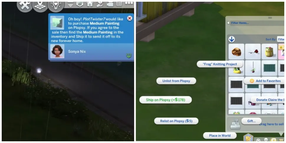 После того как предложение будет сделано, игроку необходимо выбрать предмет на своем домашнем лоте, чтобы можно было отправить его покупателю по почте. Затем нужно выбрать опцию "Ship on Plopsy", но если предложение не устраивает, то следует выбрать опцию "Relist on Plopsy". Деньги будут получены мгновенно, а позже покупатель также получит комментарий в форме обратной связи.