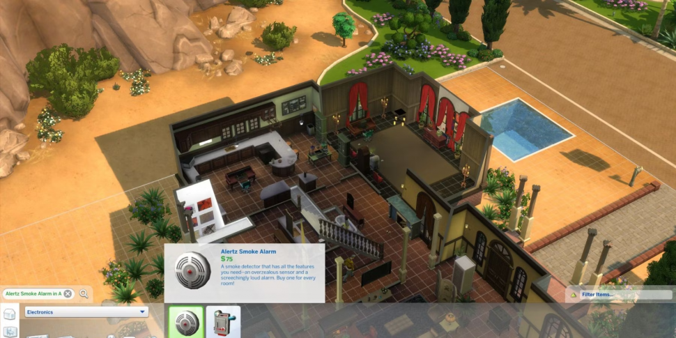 Установка дымового пожарного извещателя - еще один эффективный способ борьбы с пожарами. Задача дымового датчика - не потушить пожар, а оповестить пожарную службу, чтобы она могла прибыть на место и ликвидировать возгорание. Чтобы установить датчик дыма, перейдите в режим "Сборка" и найдите "Alertz Smoke Alarm", который можно приобрести за 75$.