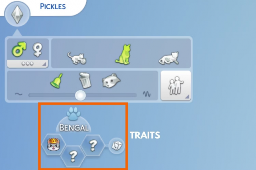 Например, бенгальские кошки - это порода, которая требует много времени для игр. Естественно, разработчики Sims 4 заранее выбрали для них черту "Избалованные".