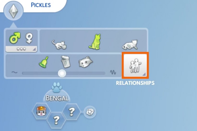 Во всплывающем меню "Отношения в доме", отмеченном значком двух фигур, можно изменить отношения между питомцами в вашем доме.