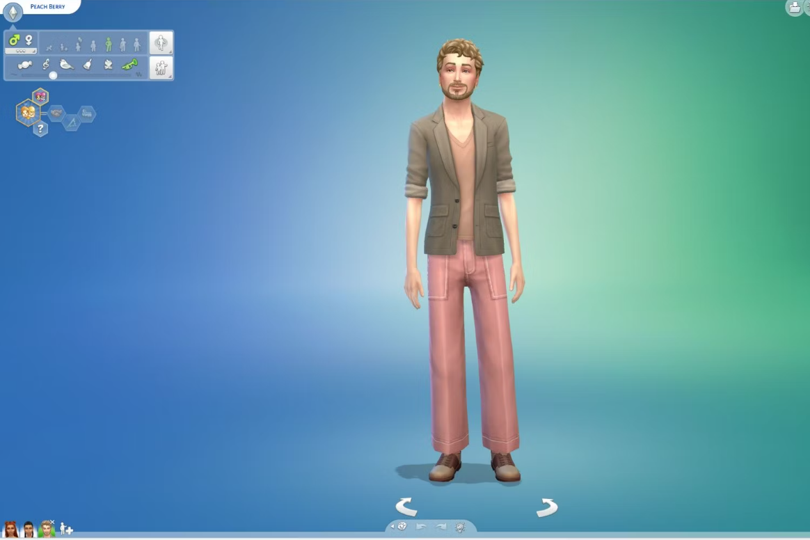 Чтобы изменить личность кошки в Create A Sim, нажмите на пламбоб в левом верхнем углу, чтобы сгенерировать варианты.