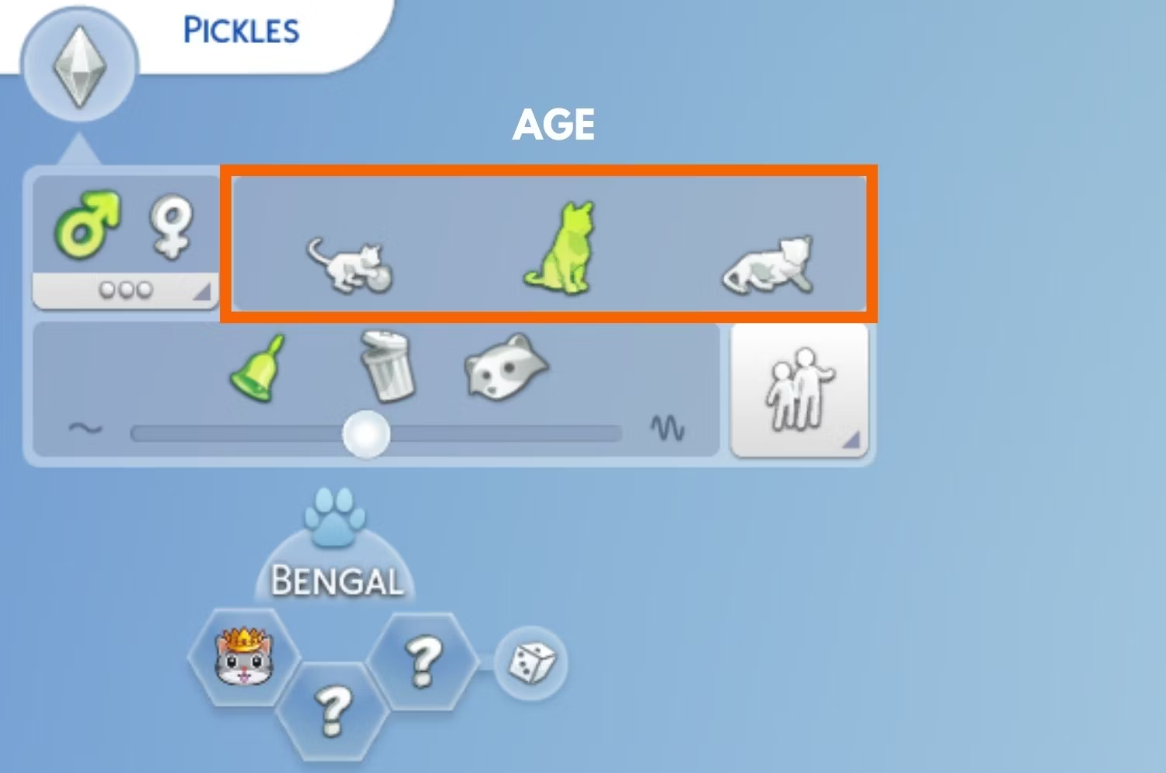 В то время как симам-людям в Create A Sim предлагается шесть возрастных групп или "жизненных этапов", в Create A Pet их всего три.