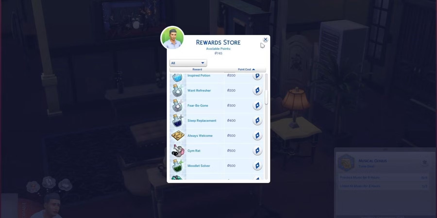 К счастью, те, кто не любит использовать читы, могут избавиться от негативных настроений без использования каких-либо модов или читов. Moodlet Solver - это эффективная жидкость-эликсир, которую игроки могут использовать для борьбы с негативными настроениями. Чтобы приобрести его, перейдите в магазин наград, расположенный в правой нижней части экрана, и купите его за 500 очков удовлетворения. После покупки эликсира просто заставьте сима выпить его.