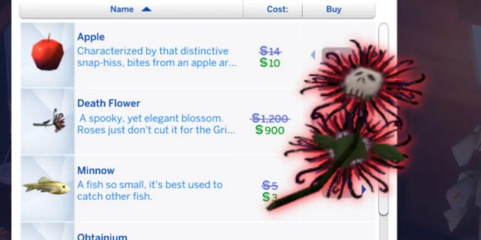 Симам необходимо иметь 10-й уровень навыка садоводства, чтобы разблокировать пакет редких семян и получить шанс найти цветок смерти. Кроме того, они могут привить его, достигнув 5-го уровня садоводства. Если привить гранат и орхидею, то получится цветок смерти. Игроки могут приготовить амброзию на любой плите или нажав на холодильник, когда у них есть все ингредиенты. Затем попросите нужного сима-призрака съесть амброзию.