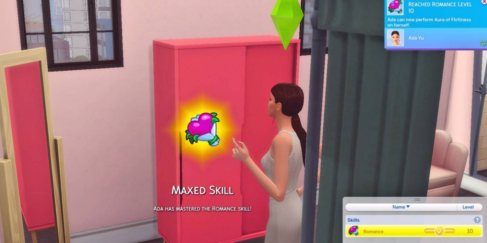 Достижение 10 уровня навыка «Романтика» дает особенно мощное преимущество: симы могут наложить на себя Ауру флирта, создав уникальный настрой, который действует в течение 2 часов. Этот настрой усиливает их кокетливые эмоции, позволяя легче очаровывать и привлекать потенциальных партнеров, а также эффективно углублять романтические отношения. Здесь представлены все взаимодействия, которые открываются