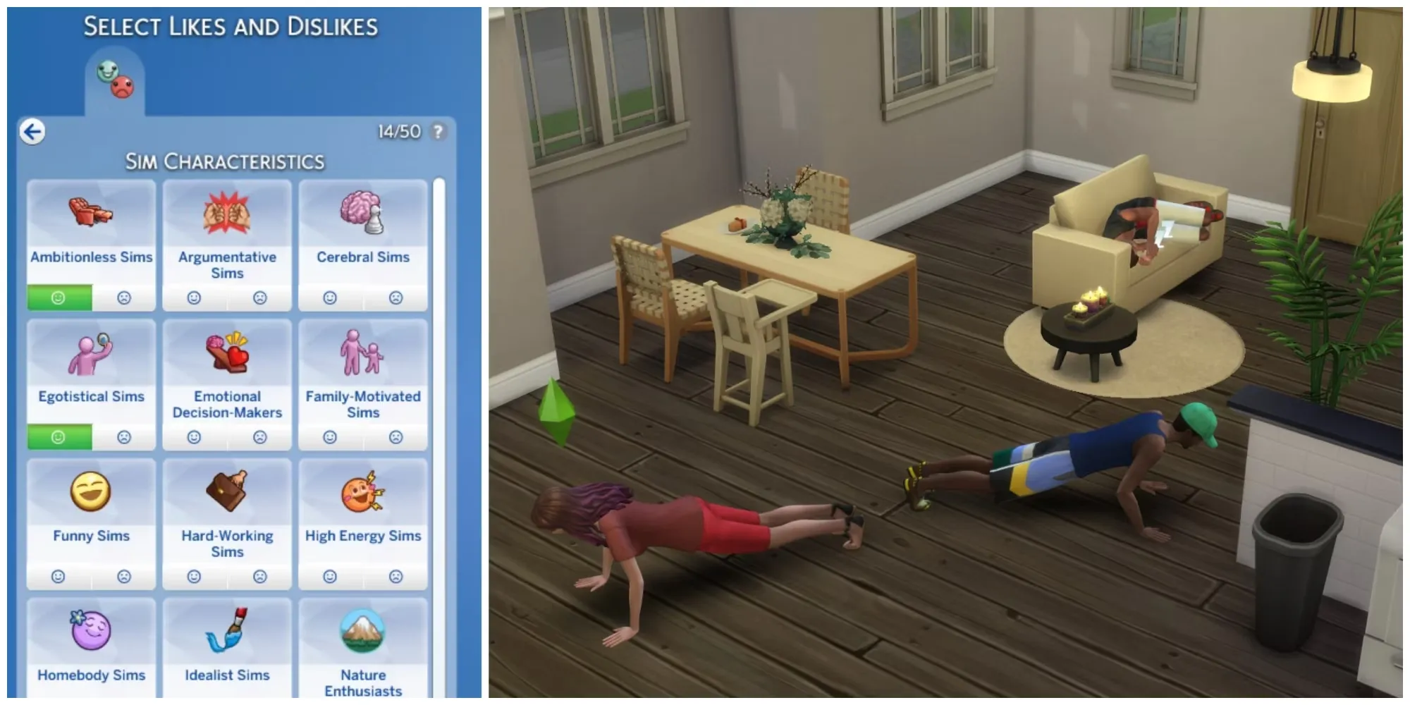 В категории "Характеристика сима" есть 18 вариантов, но игрокам не нужно устанавливать, нравятся или не нравятся им все эти характеристики.