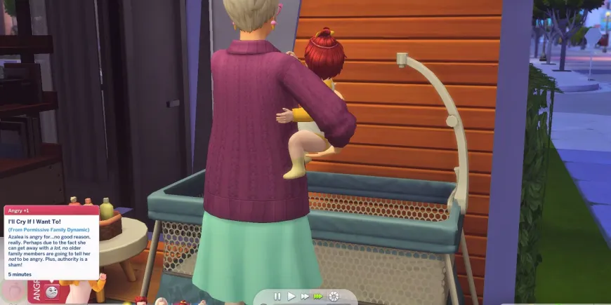 Например, родитель со строгой динамикой будет наказывать своих детей чаще, чем родитель с вседозволенной динамикой. Это также происходит автономно, и игроки могут наблюдать, как строгие родители часто ругают своих отпрысков - независимо от их возраста. Эта динамика также влияет на настроения, получаемые симами во время взаимодействия. Например, симы-младенцы могут получить настройку "Гнев" после взаимодействия с вседозволенным воспитателем, что может усилить их истерику. Таким образом, хотя отношения "Разрешающие" могут показаться хорошим вариантом для поддержания позитивного взаимодействия, это может оказаться не лучшим подходом при работе с младенцем, который требует структуры и дисциплины. В результате, если игроки владеют пакетом "Родительство", добавление механики ценностей персонажа означает, что различные семейные отношения могут оказать значительное влияние на развитие малышей, детей и подростков.