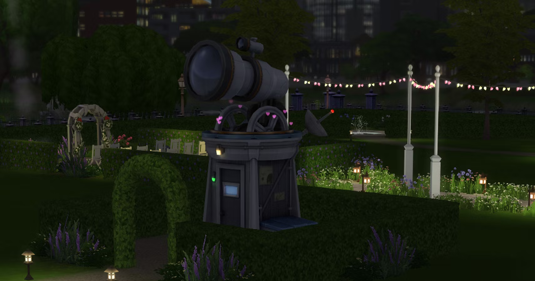 Также есть Обсерватория на заднем дворе, которая представляет собой колоссальную космическую обсерваторию, размещенную на улице, чтобы ваши симы могли наблюдать за звездами.