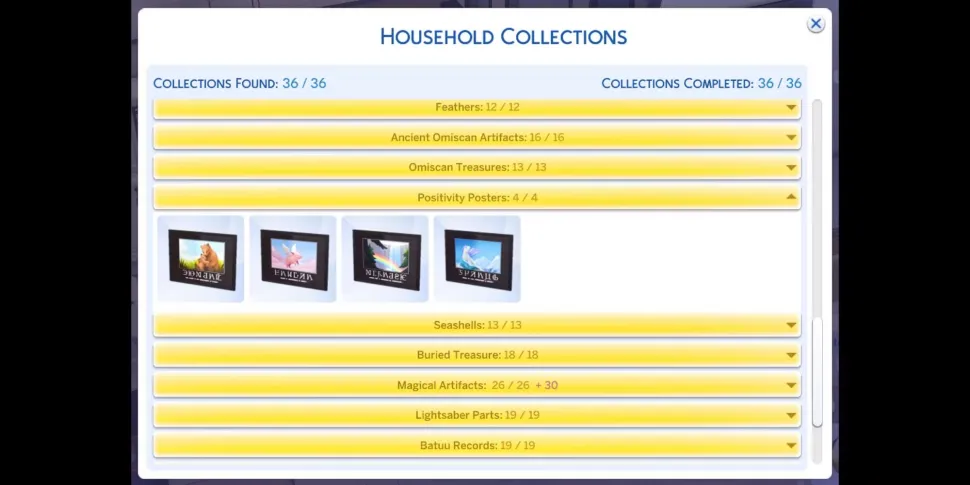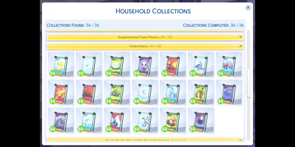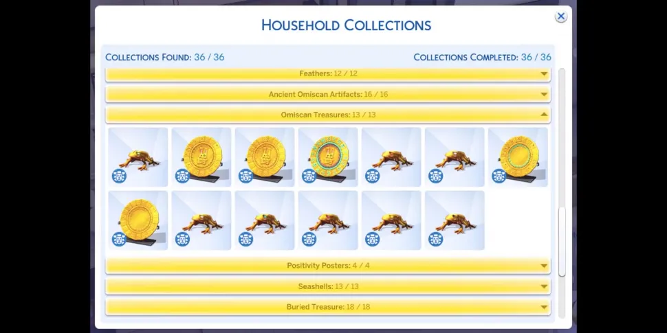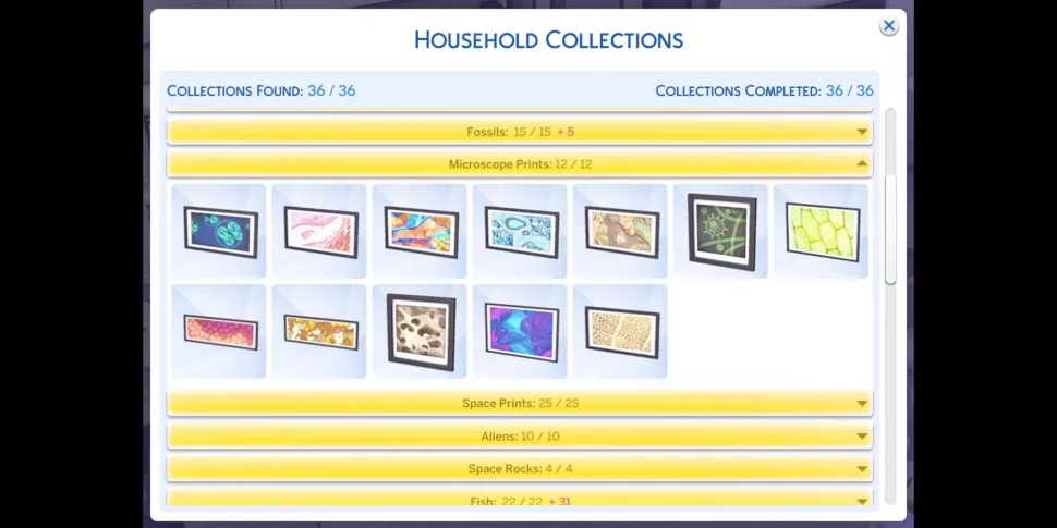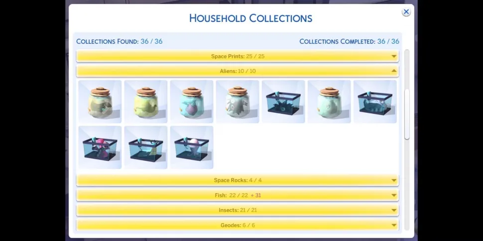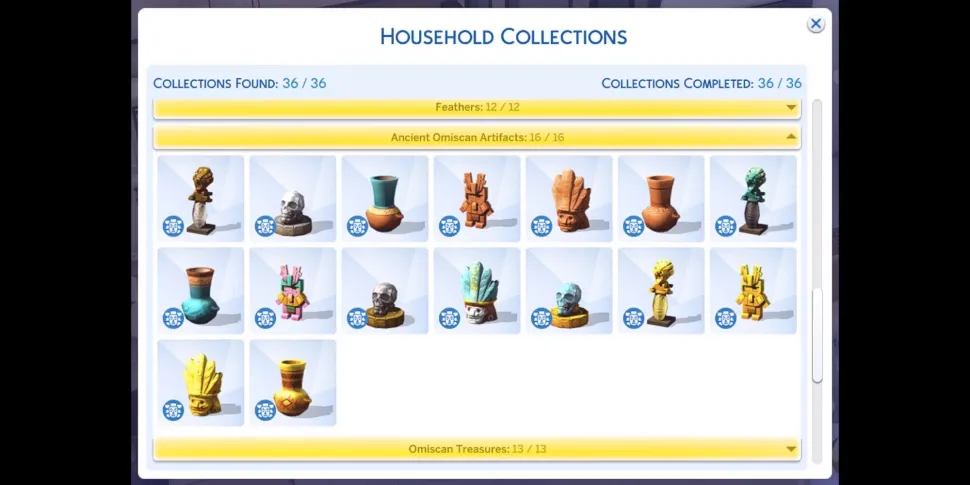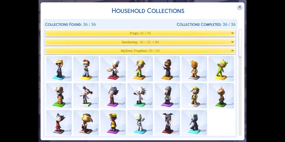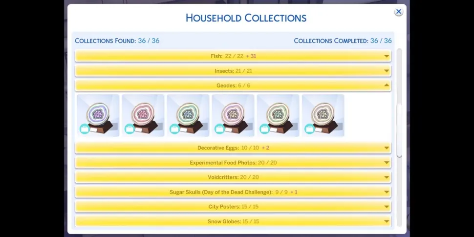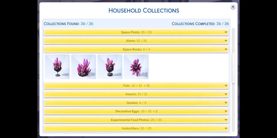 The Sims 4 предлагает игрокам возможность собирать различные предметы различными способами, включая покупку, ремесло и исследование. Эти предметы можно найти в различных категориях, называемых коллекциями, которые варьируются от растений до открыток и даже окаменелостей. Всего в игре доступно 36 коллекций, некоторые из которых сложнее других. Некоторые коллекции требуют только базовой игры, другие являются эксклюзивными для определенных паков или событий с ограниченным временем. Завершение коллекций позволяет разблокировать различные награды и дает игрокам чувство выполненного долга.
