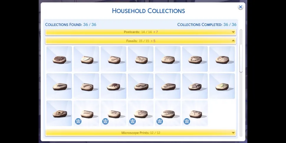 Чтобы собрать коллекцию "Микроскопические отпечатки", игрокам необходимо иметь высокий уровень навыка "Логика" и микроскоп. Как и в коллекции "Элементы", для получения отпечатков микроскопа требуются другие предметы коллекции, такие как растения, окаменелости и кристаллы, хотя не каждый предмет гарантирует получение отпечатка.
